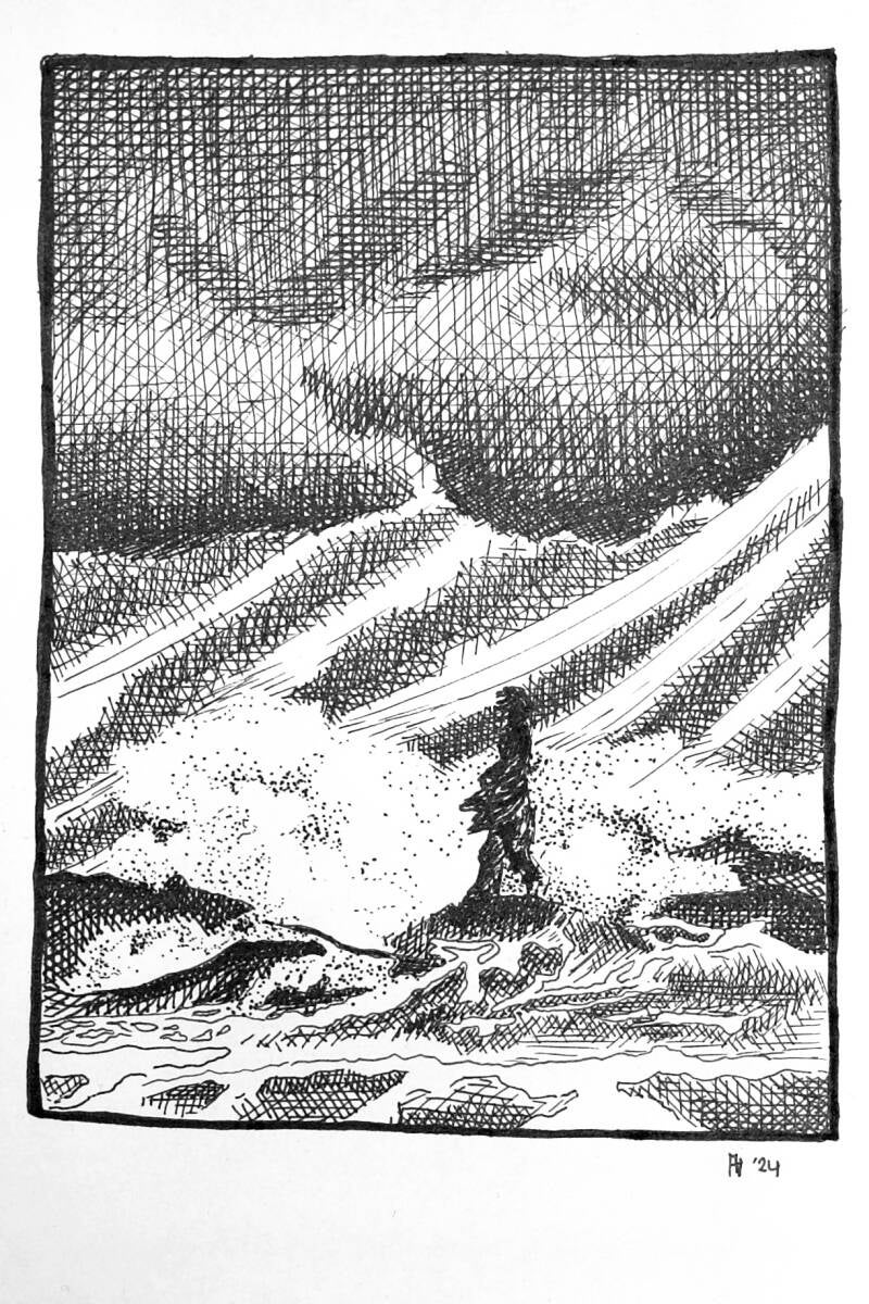 De indrukwekkende kleuren vervloeien in elkaar. Haar lichaam is zo zwaar. Ze kan hier tot het eind der tijden blijven liggen. Al haar zenuwen worden alert als het scherp van een sikkel op haar keel wordt gezet. Dit is een belangrijk onderdeel van de inwijding. Haar stamgenoten dragen het litteken met trots. Zonder dat litteken ben je geen volwaardig lid van de stam. Haar ademhaling versnelt als haar huid eerst mee rekt met de beweging van het staal dat over haar hals wordt gehaald. Dan biedt haar huid weerstand en opent het vlees zich met een korte, scherpe pijn. De sikkel dringt binnen. Warm bloed stroomt van haar hals naar haar sleutelbeen waarna het zich kriebelend een weg over haar borst zoekt. Energie stroomt uit haar weg. Energie die ze nodig heeft om zich tegen de grauwe cocon te verzetten en zich vast te houden aan de wereld. Alles in haar schreeuwt dat er iets niet klopt. Ze probeert zich door de mist te worstelen die bezitneemt van haar geest. Wat ze ook doet, ze kan niet voorkomen dat ze wegglijdt in het donker dat het einde van alles zal zijn.